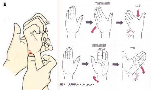 활동 중에 상처를 입었을 경우에는 응급조치로써 고정할 수 있는 보호대를 하여 냉각 찜질을 시행합니다. 손목은 발목과 마찬가지로 일상생활에서도 잘 움직이는 관절이므로 테이핑이나 보호대를 적극적으로 사용하여가능한 한 움직이지 않도록 해야 합니다.